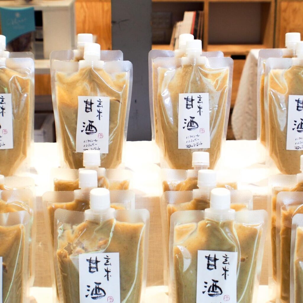 Agtで販売している甘酒は、「玄米 + 糀 + 水」だけで作る” 玄米甘酒 “で、岡山にある味噌屋さんで仕込んでもらっています。