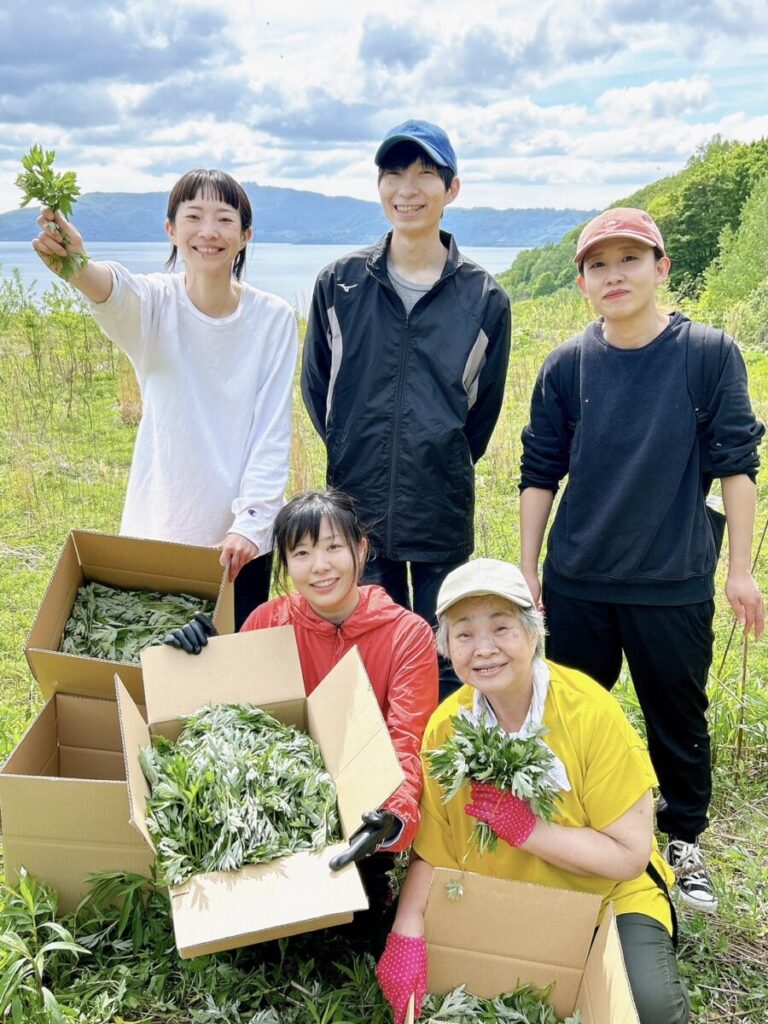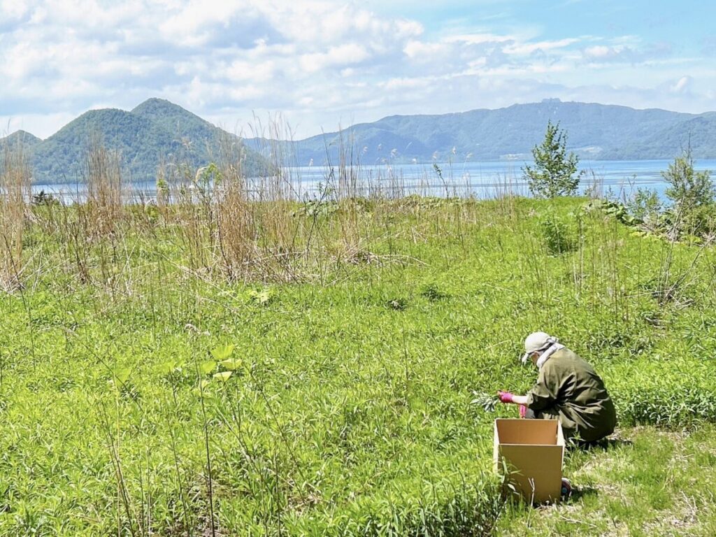 2024年春、北海道洞爺にある自社の畑に向かい、野生のヨモギを収穫。自然が豊かな洞爺の大地で育ったヨモギは、香りも良く、触れているだけで野生のエネルギーをいただいているようでした。