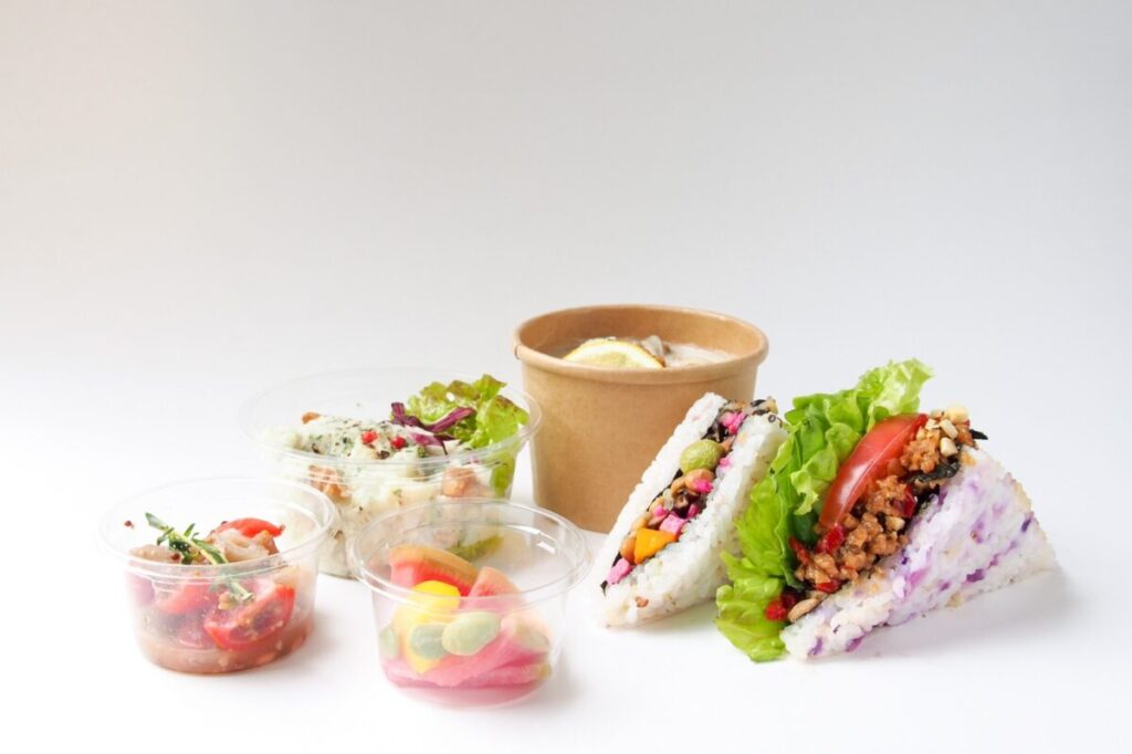 こちらのセットは、上記商品の他、お好きなこめサンを一つと、サラダ、ミニマリネ、ぬか漬け と、色んなお惣菜を少しずつ楽しめるお得なセットです。