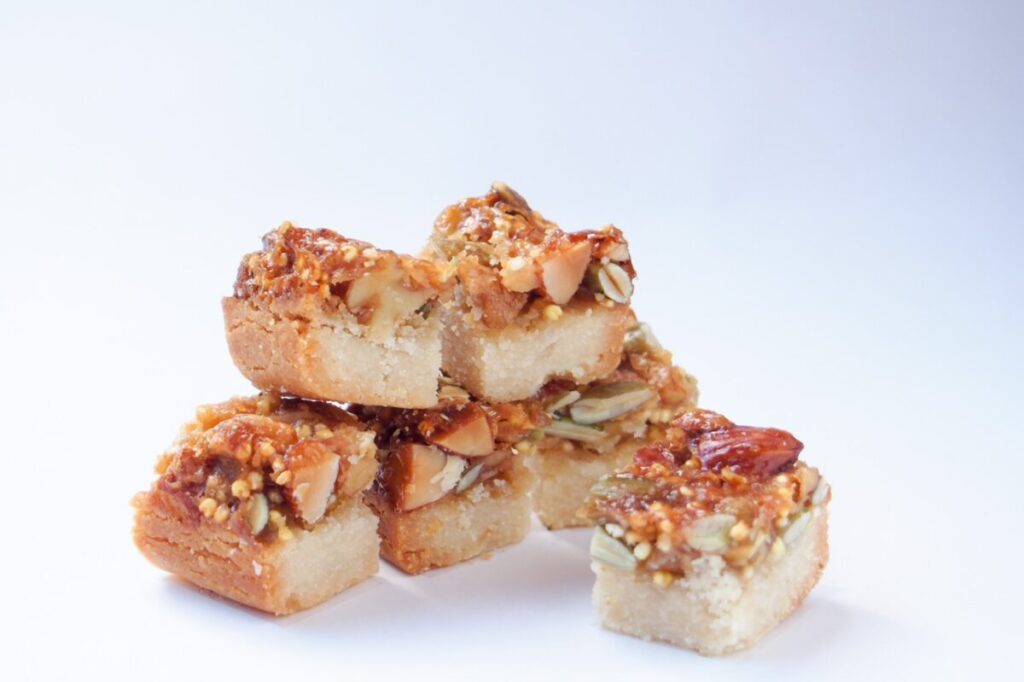 ひとくちサイズのクッキー。 その一粒に、雑穀とナッツがぎゅっと詰まった、手軽にエネルギーチャージが出来る One Beit スイーツ。色んな食感があって、咀嚼効果も期待できる、カバンに常備しておきたい一品。