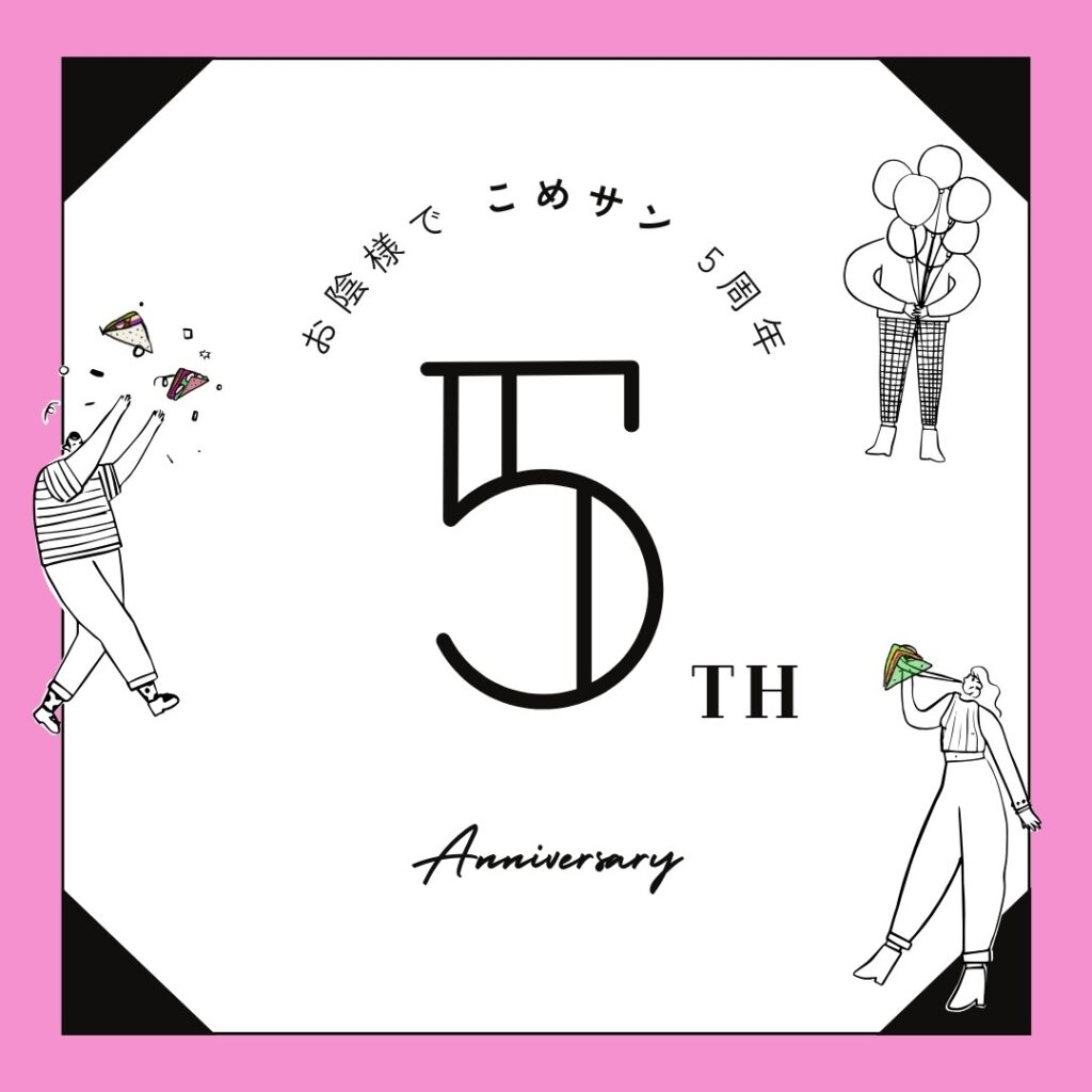 そんなこめサン®を5年間支えてくれたみなさんに感謝を込めて、周年にふさわしい企画を用意しました。ぜひ私たちと一緒に、こめサン®5周年で盛り上がっていきましょう!