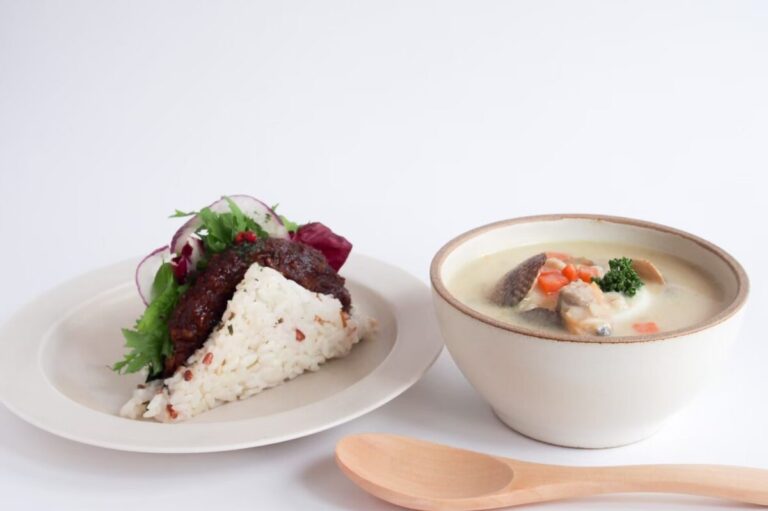 飴色玉ねぎを加えて旨みを閉じ込めた、まるで本物のお肉のような食べごたえです。