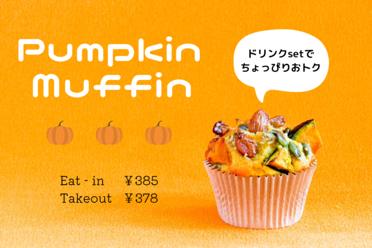 スイーツメニューには「かぼちゃのマフィン」、「タピオカプリン ぶどうとスパイス」、「タピオカプリン 塩キャラメル」も登場。