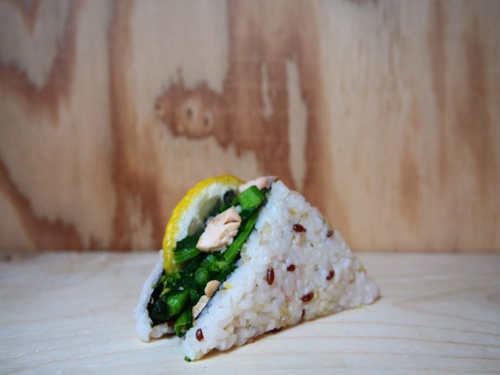春らしさを感じる食材の一つが菜の花。ほんのりとした苦みが、春の訪れを感じさせてくれます。鉄分、カリウム、ビタミンB群などミネラルやビタミンが豊富で、デトックス効果もあるといわれています。そんな菜の花をこめサン™の具材にたっぷり採用。その名も「菜の花アヒージョ」です。ただゆでたものを挟むだけでは楽しさがないと、菜の花とサクラマスをオリーブオイルとニンニクで一気に高温加熱し、アヒージョ風に旨みをギュッととじこめました。そこに、旬の柑きつを用いて爽やかさをプラス。ジューシーな美味しさを楽しめます。350円(税別)。