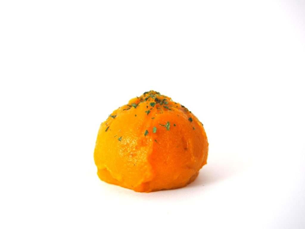 血行を促進し、体を温める効果があるといわれているカボチャ。みそ玉は、このカボチャを使った「かぼちゃソイミルク」。ペースト状にしたカボチャに、白味噌や豆乳などを加えてポタージュのように仕上げました。ひと口飲むと、程よい甘みがホッとした気持ちにさせてくれます。心も身体もじんわりポカポカするみそ玉です。200円。