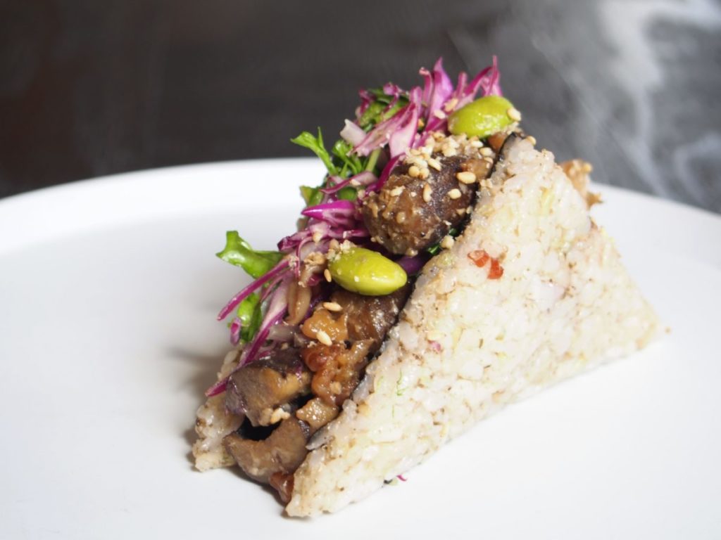 10月のこめサン®は、「柚子ごぼうサンド」。食物繊維とミネラルたっぷりで、腸の働きを整えてくれるゴボウをたっぷり用いました。醤油麹や柚子胡椒などの味がしっかりしみやすいようたたきゴボウにしています。疲労回復効果のあるレンコンや食物繊維のあるシメジも一緒に炒めました。ご飯は、Agtのオリジナルブレンド「あぁう米」。自然栽培の玄米と白米をブレンドした「玄米より炊きやすく、白米のように食べやすい」というお米に、ゴボウのペーストを混ぜて炊き上げました。10月から新米に切り替わるので、ご飯の味も楽しみにしていてください。350円。