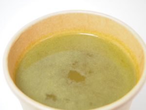 いつもであれば次に「みそ玉」を紹介するのですが…、1月はいつもとちょっと趣を変えて、みそ玉ではなく「塩糀昆布スープ」を皆さんに提供したいと思います。昆布といえば、「よろこんぶ」といわれ、新年の縁起物のひとつ。めでたさに、健康にという願いも込めて、焙炒コンブ茶に自家製の塩糀などをあわせたスープに仕上げました。200円。