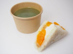 そして、「新年モチみかんサンド」と「塩糀昆布スープ」をセットにした「新年甘味サンドセット」も提供することに! 甘いものを食べると、ちょっとしょっぱいものが欲しくなりますよね? お汁粉に塩昆布が付いてくるような感覚で、2つの味を楽しんでいただけたらと思います。500円。