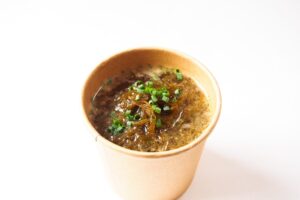 春のデトックスにおすすめの食材のひとつ、海藻を用いたのが「春のもずくのお味噌汁」。春が旬の沖縄産のもずくがたっぷり入っています。こだわりのだしと麦味噌で仕上げた上品かつホッとする味わいです。380円。