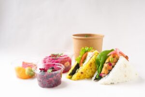 5月からのお得な「腸ハッピーセット」にも、「炊き込みごはんの素サンド」と「春のもずくのお味噌汁」が入っています。1600円。