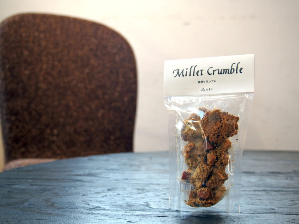 新しいおやつとは、「雑穀クランブル」。実はこの商品、秋に販売していたサラダの中に入っていたもの。お客さまから、「このクランブルだけ別売りしていないの?」という問い合わせや、「これだけを販売してほしい」といったリクエストをたくさんいただき、今回商品化となりました。雑穀をたっぷり使ったサクサクした食感と、オリジナルブレンドのスパイスが効いた味を楽しめます。おやつとしてはもちろん、ワインのおつまみやサラダのトッピングなどにもおすすめ。甘いものが苦手な方へのバレンタインギフトにもぜひ。1袋360円(税別)。