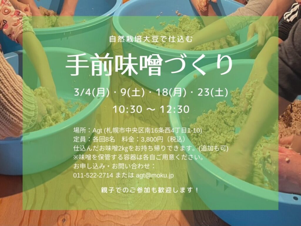 Agtでは毎年恒例の、手前味噌づくりのワークショップを行なっています。