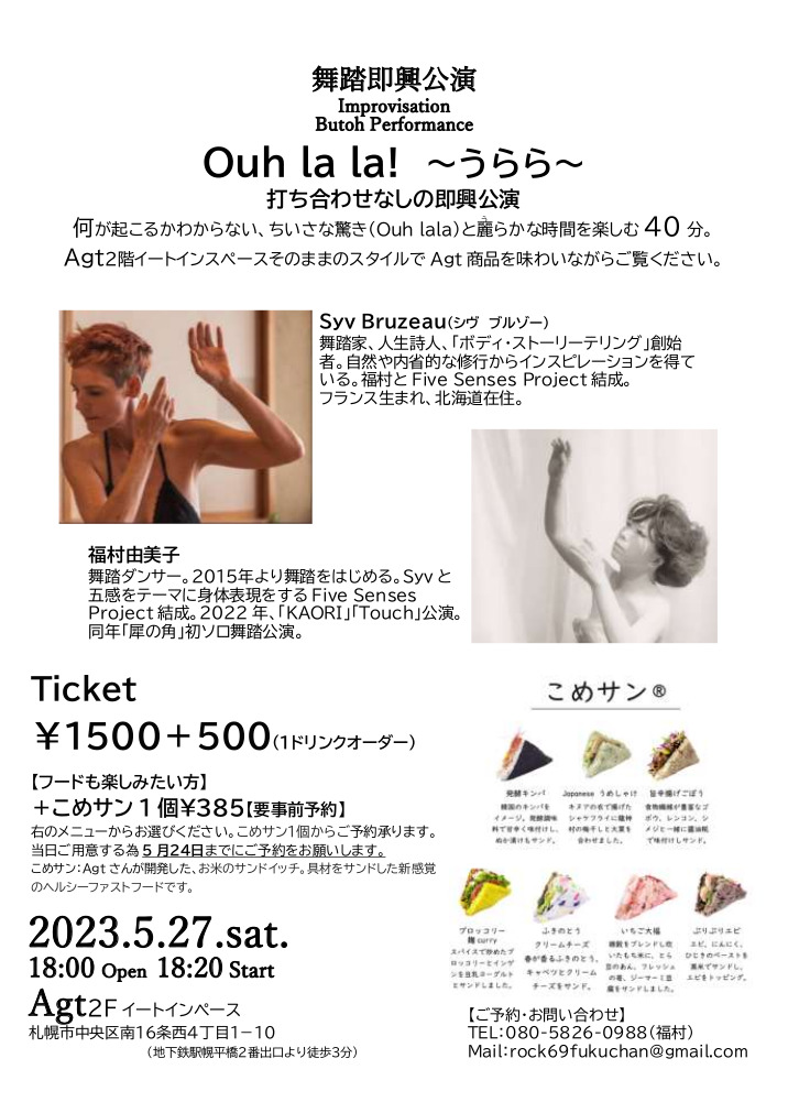 舞踏即興公演「Ouh lala! ~うらら~」がAgtで上演されます