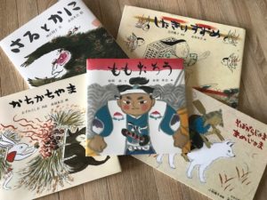 さて、皆さんは日本の五大昔話を知っていますか。さるかに合戦、かちかち山、花咲爺、したきり雀、桃太郎の五つがそれにあたります。五大昔話の絵本で、青田さんが「本物です」と太鼓判を押すのが次の五作です。