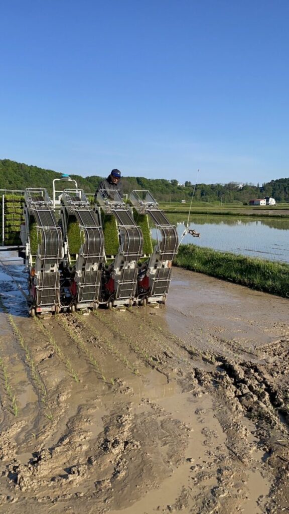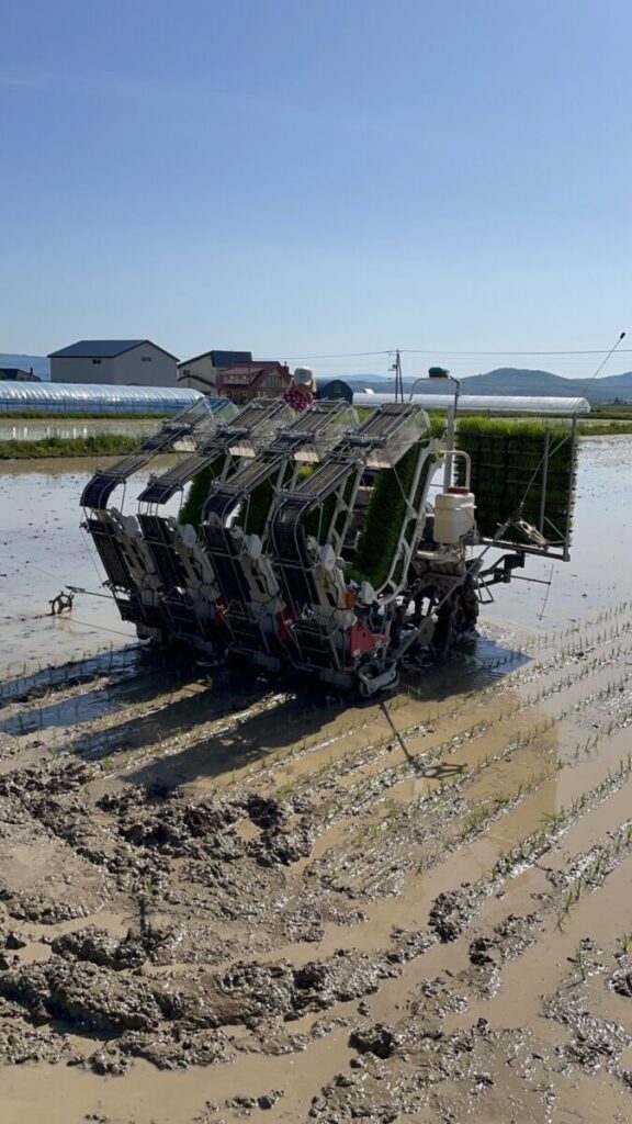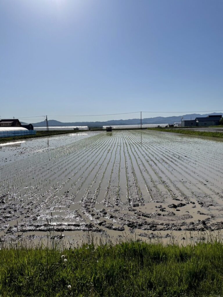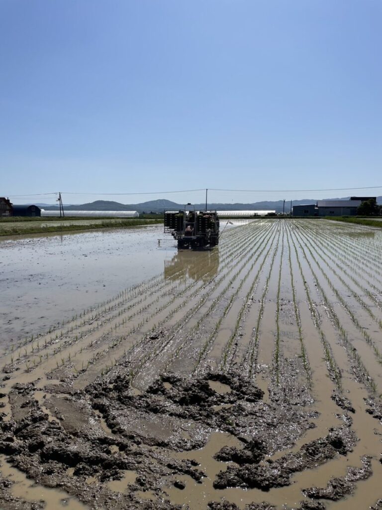 2023年5月末、北海道新十津川町の高山農園さんにAgtスタッフが田植え作業のお手伝いに行きました。